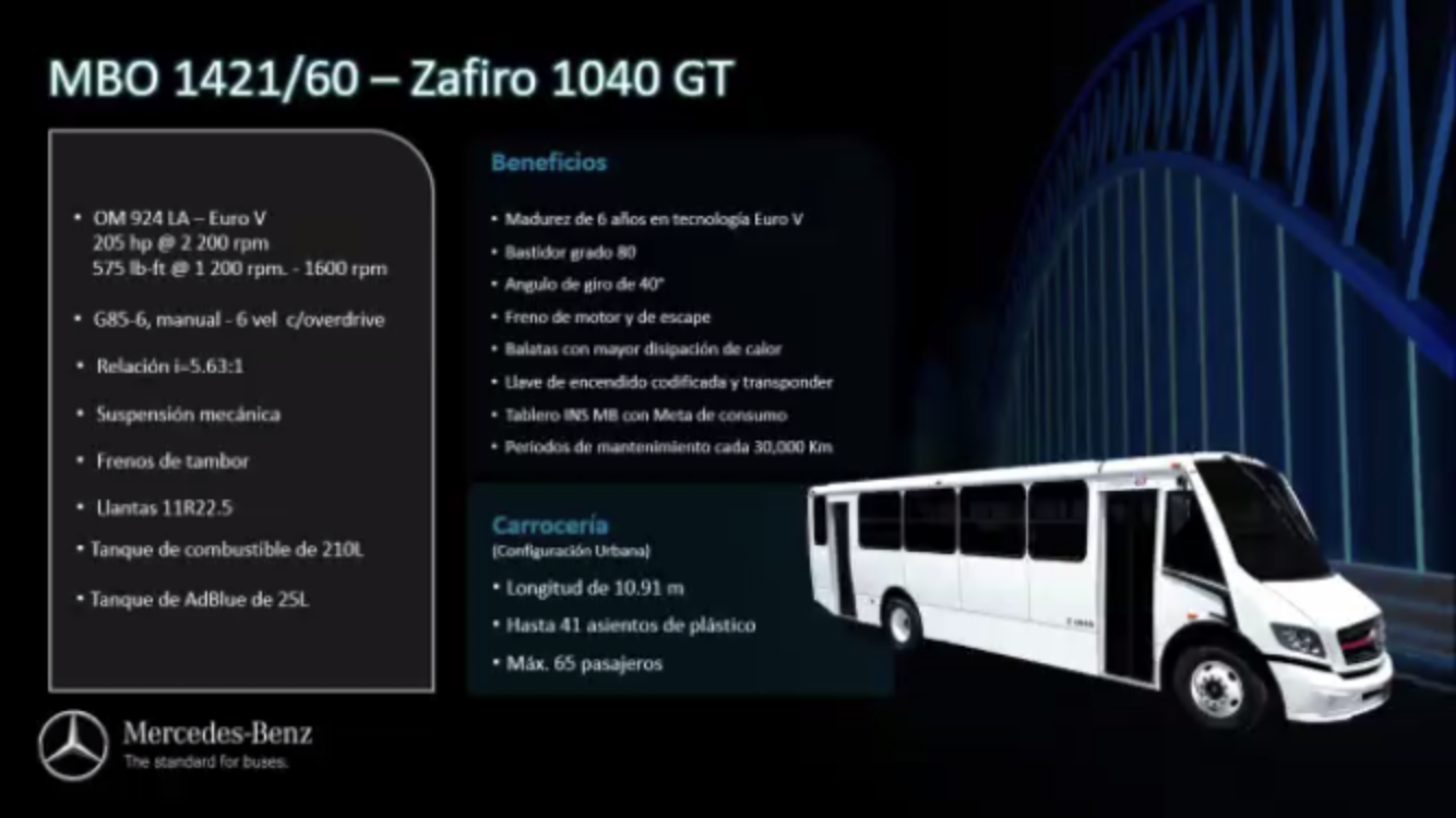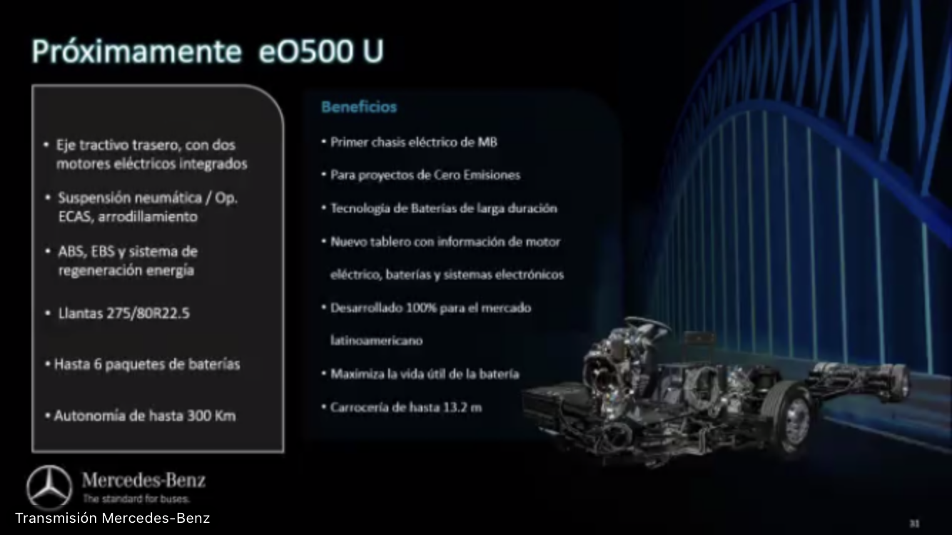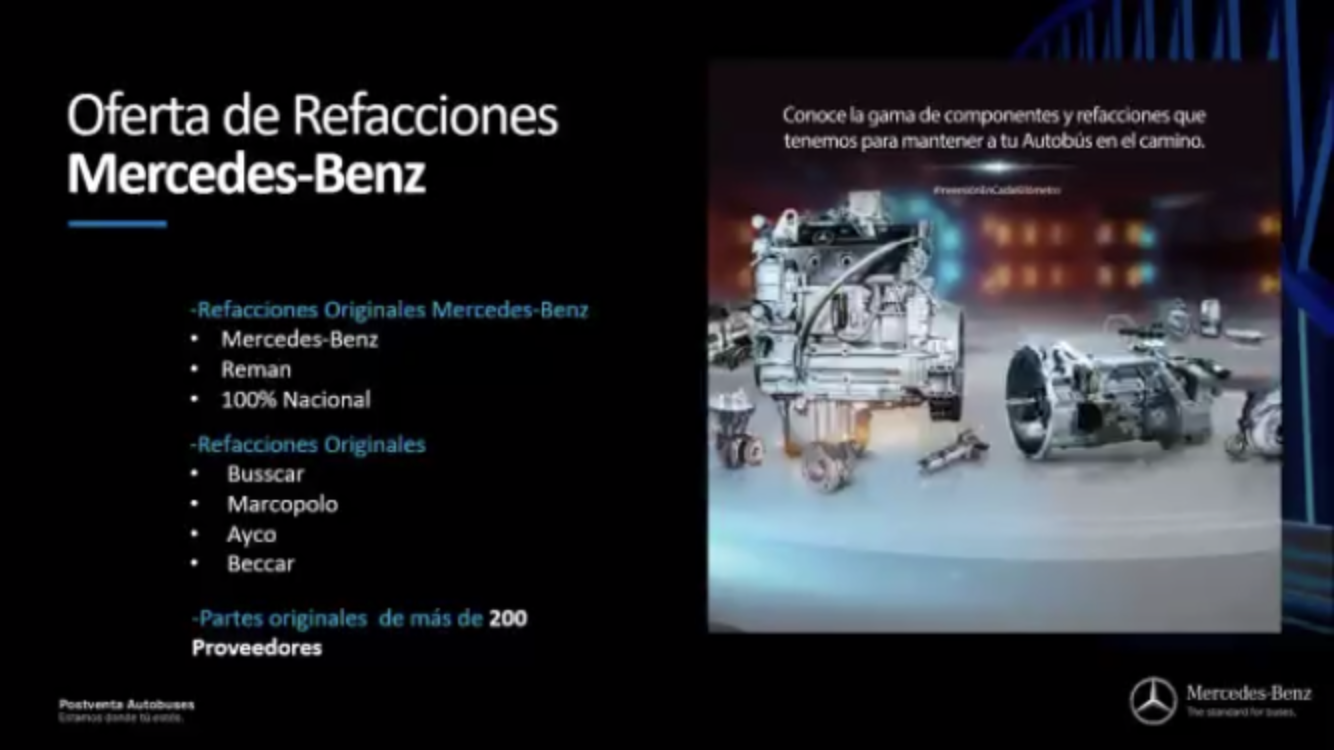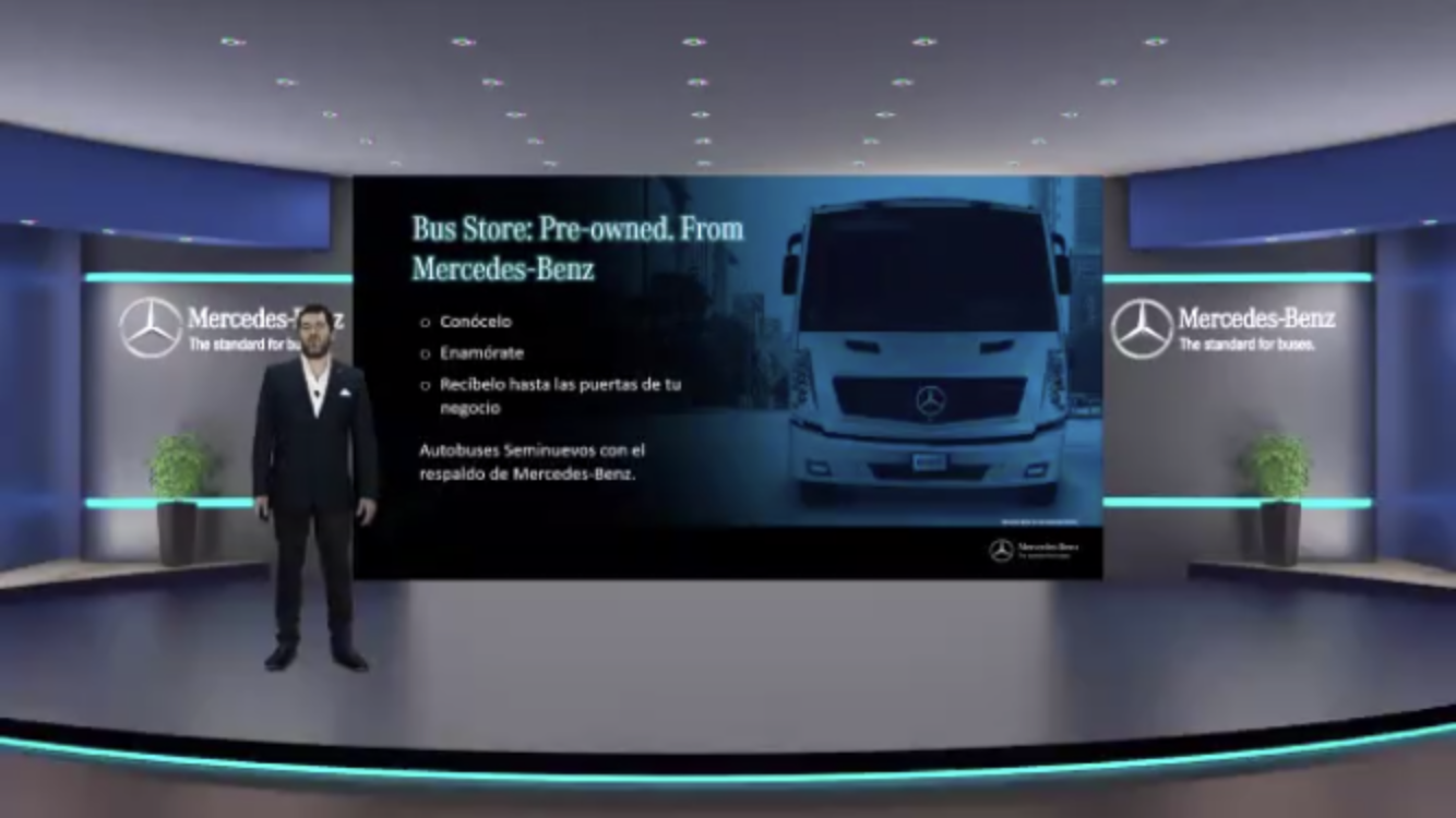 Durante la presentación virtual, Aldo Sauceda, gerente de Administración de Ventas y Planeación de Productos, comentó que 5 de cada diez vehículos de transporte urbano son Mercedes-Benz.