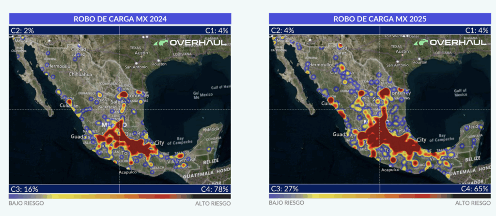 El ‘Reporte Anual 2025 de robo de transporte de carga’ de Overhaul reveló la expansión del delito desde el centro del país a la región del Bajío.