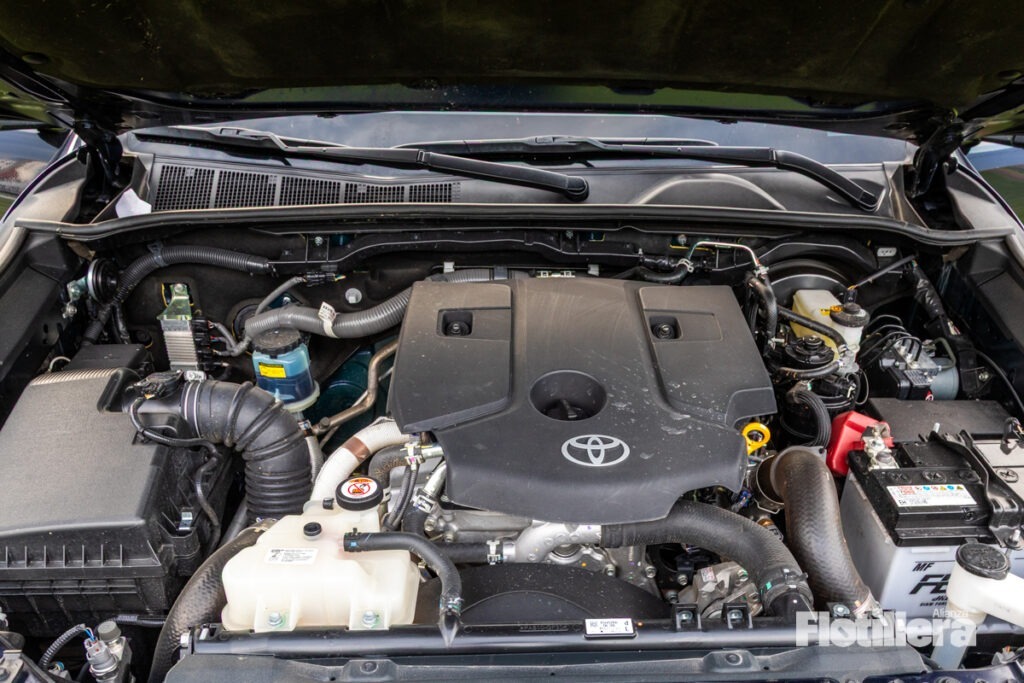 Hilux utiliza un motor de 2.8 L de cuatro cilindros y turbocargador de geometría variable. Asimismo, se apoya de un motor eléctrico que genera 16 hp y tiene capacidad de 48 V. Todo este apartado, en conjunto, entrega 201 hp y 369 lb-pie de torque.